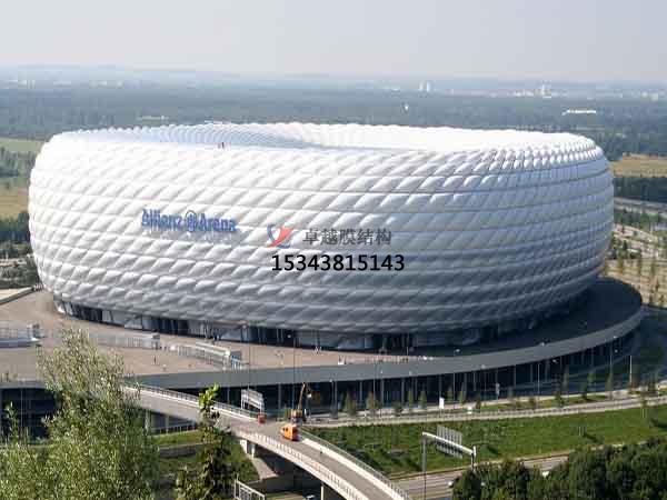 2、膜結構是目前發(fā)展很快的一種新型空間結構,是一種效率極高的張力集成體系,可以充分發(fā)揮鋼索的強度與張拉整體結構的空間作用。它通過鋼骨架、鋼索、充氣與膜材共同受力形式穩(wěn)定曲面來覆蓋建筑空間,具有高度的形體可塑性和結構靈活性,即通過對膜材內部施加一定的預張力,使其具備了抵抗外荷載能力,從而充當結構材料的一種結構體系。我公司先后在十堰地區(qū)承接球場頂棚罩棚設計施工案例,簡介如下: