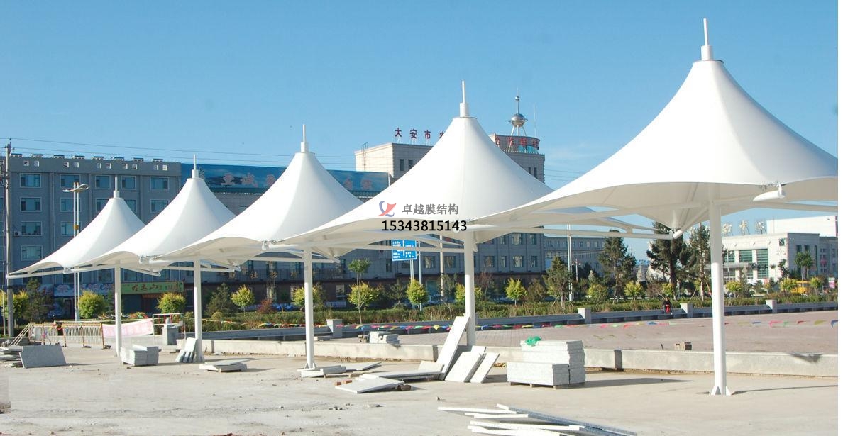 膜結(jié)構(gòu)車棚主要有7字型,拉桿型,帽頂型,圓管型等造型,每種造型還有單挑和雙挑之分,造型不同價(jià)格也是不一樣的。